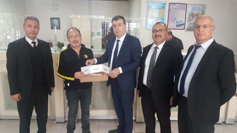 Ayrıca PTT Müdürlüğü'nde gunun anlamina istinaden 183 numarayla işlem yapan vatandaşlara hediye takdim edildi.