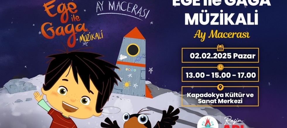02 Şubat 2025 Pazar günü Kapadokya Kültür ve Sanat Merkezi’nde çocuklarla buluşacak olan Ege ile Gaga’nın ay maceralarını anlatan müzikal çocuk tiyatrosu aynı gün 13:00-15:00 ve 17:00 saatlerinde miniklerle buluşacak.